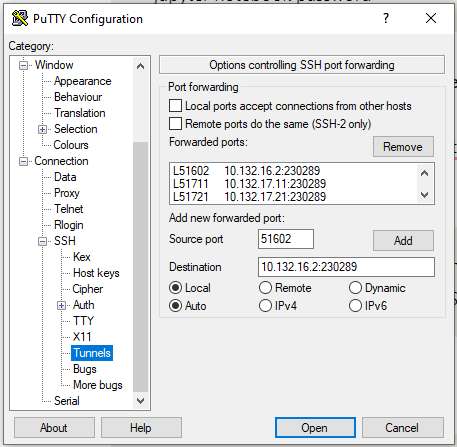 Please adjust port number (XXXXXX). I use my birthday e.g. 230289, please use a different number. Once jupyter is running, access the notebook using: localhost:51602 – or other source port as defined below – in a browser.